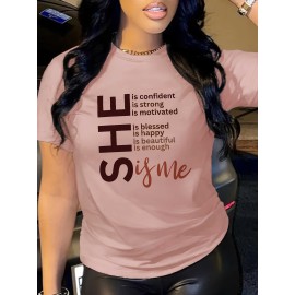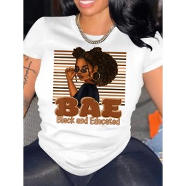 Butterfly & Letter Print T-Shirt, Casual Crew Neck Short Sleeve T-Shirt For Spring & Summer, Women's Clothing