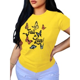 Letter Print Crew Neck T-Shirt, Casual Short Sleeve T-Shirt For Spring & Summer, Women's Clothing