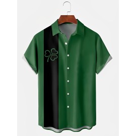 Men's Casual Fashion Printed Stripe Lapel 1/4 Button Short Sleeve Shirt For Men's Golf