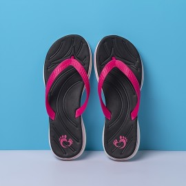 Women's Solid Color Flip Flops, Slip On Soft Sole Comfy Flat Lightweight Slides, Vacation Summer Beach Slides